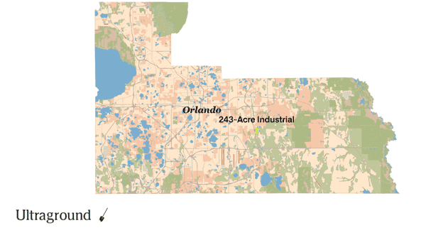 This warehouse development is 17 minutes southeast of downtown Orlando.